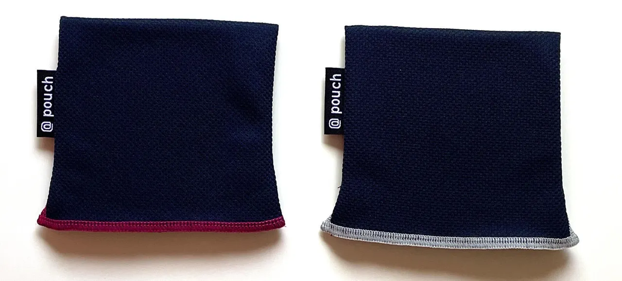 洗濯機で丸洗いできる小さなポーチ < @pouch~アットポーチ~> Sサイズ ネイビー(ピンクステッチ) × ネイビー(グレーステッチ)