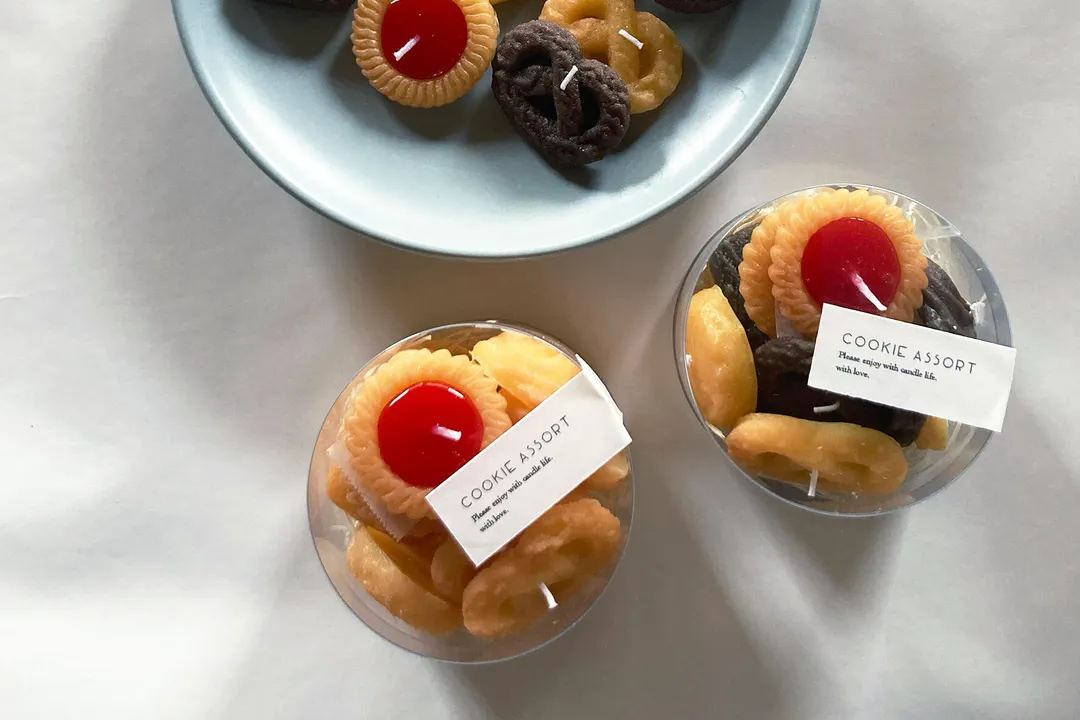 一口サイズの小さなクッキーの詰め合わせ、 まるで本物のお菓子のようなキャンドルです。 灯すとほんのり、生地にはシュガークッキーの香りがします。 1個数十分前後の小さな可愛い灯りです。 朝のお目覚め時、就寝前などほんの少しの『ほっ』の時間を灯りとともに過ごすのに最適な小さな灯火です。 人気のスイーツキャンドルはプレゼントやプチギフト、キャンドル初心者さんにもオススメです。 【香り】無香料 or シュガークッキーの香り 【燃焼時間】約15〜30分/1個(気温・空調・環境により異なる) 『ひいらぎキャンドルの〈Sweets〉シリーズ』 甘い香りに誘われて思わず食べてしまいそうな、まるで本物のようなスイーツキャンドル。 ちょっとしたプレゼントやプチギフトに最適。 キャンドル初心者さんにもオススメです。 なんだか見ているだけでもワクワクしてしまうような、そんなシアワセなひと時をお届けするシリーズです。 ひいらぎキャンドルでは、キャンドルは一点一点全て手作業で作成しています。 キャンドル本体の製作だけでなく、ラベルやパッケージのデザイン、シールの貼り付け、 梱包など、キャンドルが生まれるところから旅立つまでの間の全ての制作作業を自身で行なっております。 【ご注意点】 <こちらの商品は受注生産になります> ・香りの良い新鮮なものをお届けする為、注文を頂いてからお作りしています。 ・1つ1つ丁寧に作成しておりますがハンドメイドの為に画像と同じ作品は作れません。 手作業のため大きさに多少の誤差・お色味や形状が若干異なる場合がございます。 ・お客様よりご注文を頂いてから、すぐに製作に入らせて頂きます。 途中でのデザインや素材など一切の変更、製作のキャンセルはお受けすることが出来ません。 ・注文日より1週間以内に発送しておりますが、お急ぎの方・ご希望納期のある方は必ず事前にメッセージ機能にてお知らせ下さい。 配送地域、交通事情、素材の在庫等の理由により遅延する場合がございます。お届けまでに2週間ほどかかる場合もございます。 どうぞ余裕を持ってご購入くださいませ。 ○火を取り扱う製品となります。 「attention」という注意事項を同封致しますので、必ずお読みいただきご使用下さいますよう宜しくお願いいたします。 ※当店のキャンドルをご使用の上で起きた事故についての責任は負いかねます。予めご了承ください。