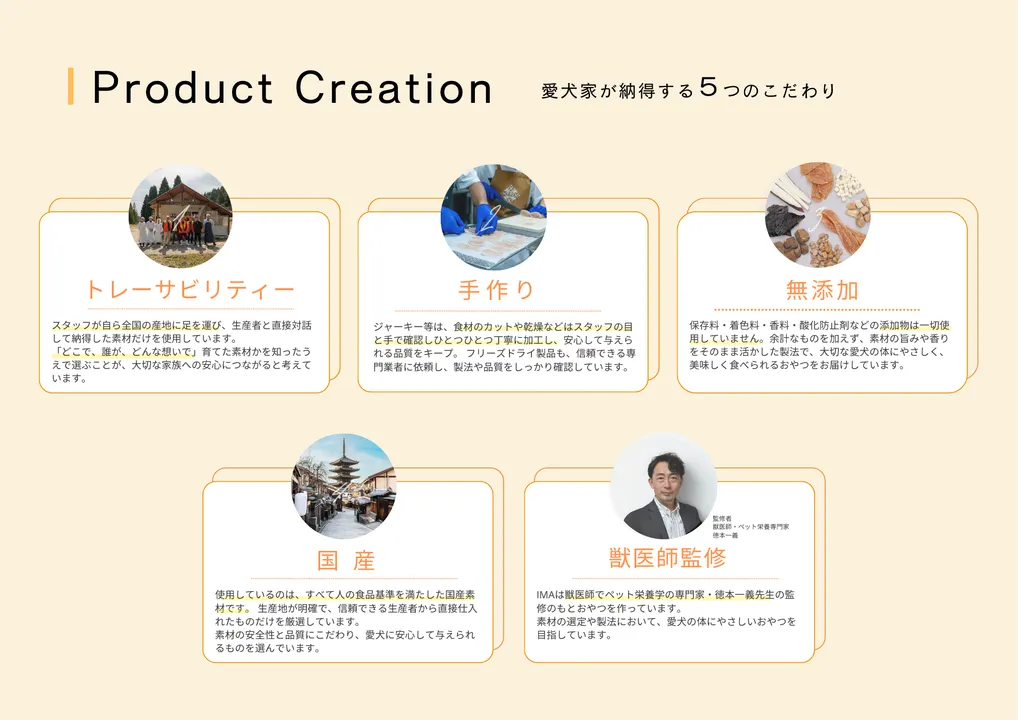 ・Product Creation IMAのこだわり(A4サイズ 29.7cm × 21cm)