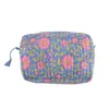 ブロックプリントのキルティングポーチ ベインフラワー BL(ブルー)