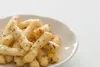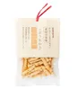 【おいしさは、自然のまんま】 着色料・保存料・化学調味料を使わずに、天然の旨みで味付けしました。もちろん原料のもち米は 国産100%、約50%を契約農家による減農薬栽培のお米を使用。 棒状のあられにごぼうを練り込みました。ごぼうの旨みをまるごと味わえる一品です。