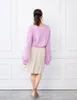 ロングスリーブVネックニット エクストラファインメリノウール100% ラベンダー サイズ2
