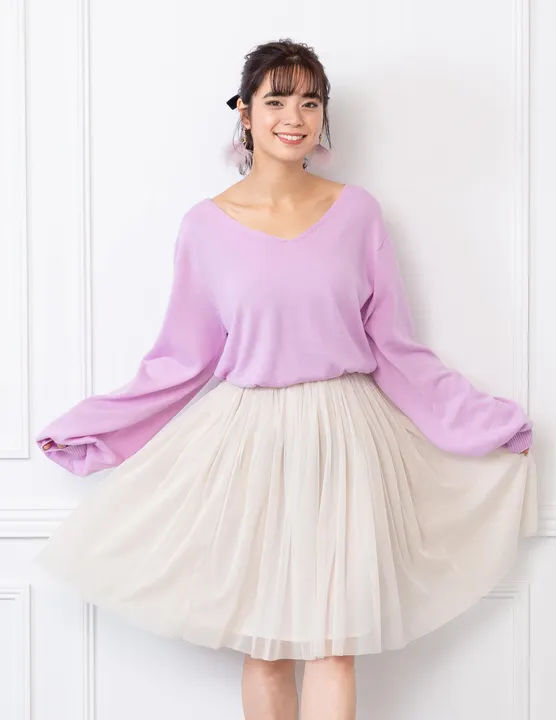 エクストラファインメリノウール100%の肌触り抜群のロングスリーブVネックニット。 100%天然素材なので、お肌が弱い方にも安心して着用していただけます。 ●萌え袖とボリューム 高身長の方でも”萌え袖”ができるほどの袖丈。 手首でとめるとふんわり、伸ばすと萌え袖になりかわいいです。 また、袖の形をストレートではなくボリュームをつけることで、肩幅を目立ちにくくする効果もあります。 ●Vネックライン Vネックラインが広く深いので、肩幅が目立ちにくくデコルテラインがすっきり美しく見えます。 首長効果もあります シンプルで飽きのこないデザインで、何にでも組み合わせられるのでヘビロテ間違いなしの一枚です ●カラー展開 ・ホワイト ・ブラック ・ラベンダー ●サイズ ※写真をご参照ください ●生地感は中厚手です