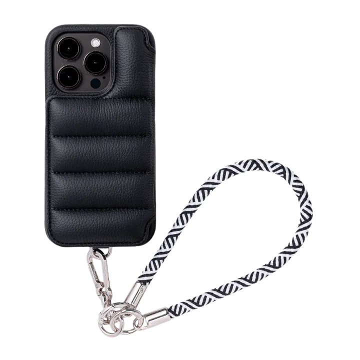 マルコモンドコラボストラップ レザーコードクリップ付 ショート(ハンド) ブラック×ホワイト