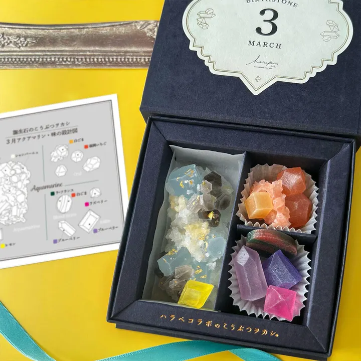 「納品月」の誕生石作品をお届けいたします。 (例:10月15日納品=『10月のこうぶつヲカシ-誕生石Tourmaline-』) ※月末頃の納品の場合、次の月のこうぶつヲカシになります。 <お届け期間> 1月のこうぶつヲカシ -誕生石Garnet- =12月末頃~1月下旬 2月のこうぶつヲカシ -誕生石Amethyst- =1月末頃~2月下旬 3月のこうぶつヲカシ -誕生石Aquamarine- =2月末頃~3月下旬 4月のこうぶつヲカシ -誕生石Diamond- =3月末頃~4月下旬 5月のこうぶつヲカシ -誕生石Emerald-  =4月末頃~5月下旬 6月のこうぶつヲカシ -誕生石Pearl- =5月末頃~6月下旬 7月のこうぶつヲカシ -誕生石Ruby- =6月末頃~7月下旬 8月のこうぶつヲカシ -誕生石 Peridot- =7月末頃~8月下旬 9月のこうぶつヲカシ -誕生石 Sapphire- =8月末頃~9月下旬 10月のこうぶつヲカシ -誕生石Tourmaline- =9月末頃~10月下旬 11月のこうぶつヲカシ -誕生石Topaz&Citrine- =10月末頃~11月下旬 12月のこうぶつヲカシ -誕生石Lapis Lazuli&Turquoise- =11月末頃~12月下旬 ーーーーーーーーーー 受注制作のためご注文頂いてから発送まで最短14日前後頂いております。 ご注文後、最短納品可能日をご連絡させていただきます。 ーーーーーーーーーー ハラペコラボのこうぶつヲカシの中でも毎月人気の誕生石シリーズ。 毎月、いくつかの誕生石をモチーフにした作品を作っています。 大切な方や、誕生日の贈り物に。