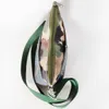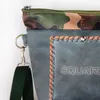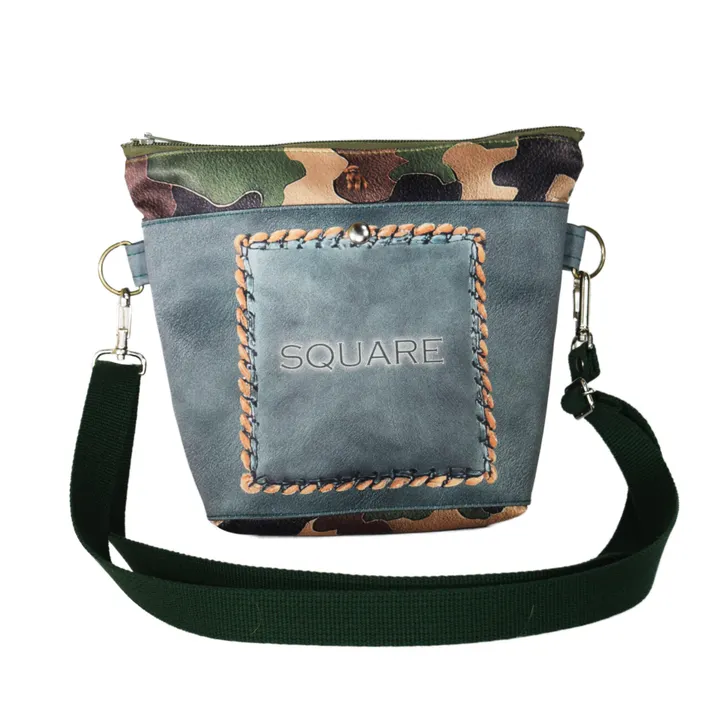 ティピィカレンのスエードスクエアモチーフあおりポケットショルダーバッグ 本体がファスナー開口部のボディに両面にあおりポケットになるようボディをつけたデザインです。同じ素材ですがデジタル染色による柄出しで全く違う素材を使ったようなユニークさを出しています。あおりポケット部分はスマフォを入れたり、出し入れが簡単なものなどいろいろな使い方ができます。 ストラップの長さ調整で、短くしてワンショルダーとして、長くして斜め掛けとして2WAY仕様ができます セカンドバッグや2個持ちバッグなど、ヘビロテなバッグとしてGood! スエードのポリエステル素材は、中肉素材で、硬さもあり丈夫で、軽さを追求しています。遮光性のある素材をデジタル染色でオリジナル柄を施していますので、他にない高級感とユニークなバッグになっています。 表面はグリーンスムースの革風ベースにスクエアの革テープ加工モチーフに、本体部分は革素材のカモフラージュ風な仕上げ素材に犬や猫を小さくポイントに差し込んで、なんか楽しくなる、軽くて便利そんなバッグに仕上がっています。 インテリアファブリックにいろんな柄をデザインしカラフルで、こんな柄見たことない、楽しくなるバッグに仕上げています。また見た目からは驚くほどの軽量な素材なので、長時間の持ち運びも疲れにくく、使い勝手抜群です。 また、デザインにこだわって作られたこのハンドバッグは、どんなコーディネートにも馴染みます。シンプルな服装にさり気なく可愛らしさをプラスしたい時や、個性的なスタイリングを楽しみたい時にオススメです。 ※ハンドルやショルダーストラップの長さは調節できます。商品画像と実際の色合いは多少異なる場合がありますので、ご了承くださいませ。 デジタル染色とは デジタルデータをインクジェットプリンターにより、高精細に描画し昇華転写染色の技術により布を染色する加工方法。 使用する染料インクは顔料系インクとは違い、布の風合いを損ねず色落ちなどもほとんどありません。 分散染料による熱転写染色方式のためポリエステル素材への染色となります。 高発色、高精度のオリジナルテキスタイルに仕上がっています。