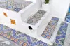 サイズ 100mm×100mm×70mm オスマントルコとアンダルシアの影響をうけて、チュニジアにもしっかりとタイル文化は残っています。 現在でもタイル屋は健在、地中海沿岸の町の家々、カフェ、レストランでは特にタイル装飾が目立ちます。 階段やお手洗い、キッチン または家のテーブルなどの家具に張ったり、コースターやお部屋のアクセントにお使いください。 ※ひとつひとつ手作業で成形・絵付け・仕上げの工程を行いますので、製品により絵付けの色むら・ズレ・にじみ・形にばらつきがあります。 ご使用に差し支えのない、小さな欠けや、部分的な釉薬の剥がれなどがある場合があります。 日本製と較べ、比較的焼成温度が低いので、欠けたり割れたりしやすいものです。お取扱いには十分に気をつけてください。 またお使いになっているパソコンやブラウザによって、商品の色合いが多少違って見える事をご了承下さい。