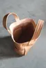 レザーの上質感を肌で感じる、手で持ちたくなるトートバッグです。 A4サイズのファイルが収納可能。 シンプルなデザインと、ほどよい大きさがポイントです。 ハンドルは表側(背中の部分から)、裏側(腹側の部分から)でレザーをセレクトし強度と手に馴染む感覚を考慮。ハンドルの幅はやや太めですが、やさしく安定感のあるバランスを重視しました。ハンドルと本体はしっかりと手縫いで縫い留め、そのステッチがポイントとなっています。 裏地には、綿100%の平織の柿渋染の生地を特注で依頼しライナーとして採用しました。 布帛ならではの軽さと天然素材の柿渋ならではの効果、風合いをお確かめください。 底板にも革を使用し、ソフトで安定感もあります。 外側にポケットが2つあるのでスマートフォンなども収納できます。 Material:表革 / Shrink leather 裏地 / 綿100% タンニン染 Size:H270 × W250 × D120mm Wight:新モデル 約430g 旧モデル 約550g ※天然皮革を使用しているため、記載の重さと多少の誤差が生じることがあります。 【注意事項】 ・商品のお色はPC環境によって多少色合い、見え方など違ってまいりますのでご了承ください。 ・部位によっては牛が元々持っていたしわや小さな傷がありますが、自然の風合いとしてお楽しみください。 ・職人が一つ一つ手作業で製作していますので革の表情は少々異なる場合があります。