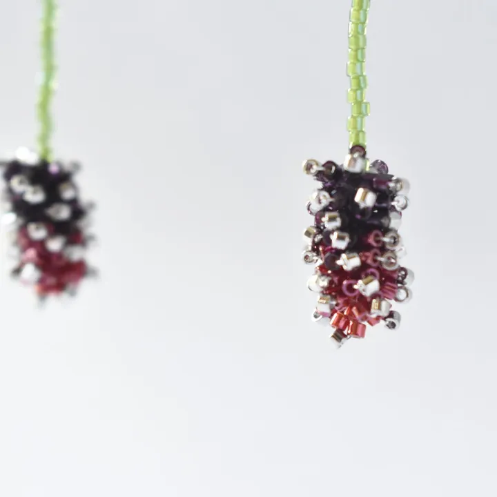 枝分かれしながら1メートル近くに伸びる枝先に 球状で小指の頭ほどの小さな暗紅色の花を かためて咲かせるワレモコウ 秋風にやさしく揺れていて 何かポロンポロンとかわいらしい音が 聴こえてきそうな 愛らしい草花です material SILVER925(ピアス金具)、SILVER925 ロジュームメッキ(イヤリング金具)、ガラスビーズ、銀糸、真鍮、チタン、フェルト、シリコン *シルバービーズはパラジウムメッキ加工を施したものを使用しております *取り付ける金具によって、使用している金属が異なります size 約10x48mm weight 約1.2-2.2g *取り付ける金具によって、重さが異なります。 *CACICOの商品は全て1点1点制作しているため、個体差があり、商品写真と差がある場合がございます。ご了承の上、ご購入ください。 *金属アレルギーの方はご使用をお控えください *受注生産のため、ご注文確定後1週間〜10日以内に商品を発送いたします