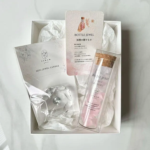 【ギフトセット~宝石箱~】ボトルジュエル&ミニジュエルキャンドル ―妖精とクリスタル―