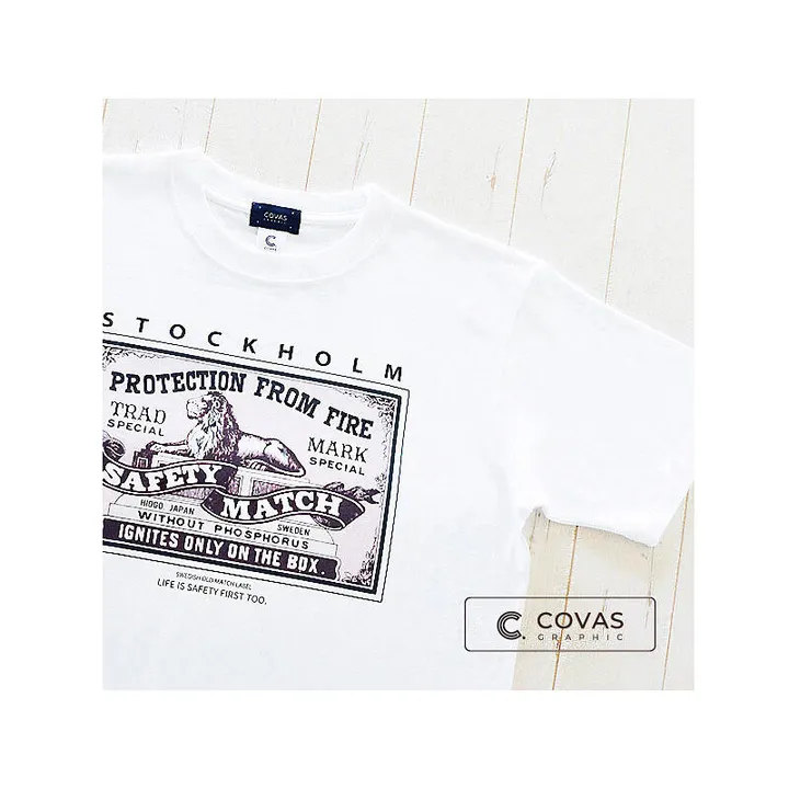 " ライオンマッチ "  昔、日本の一大産業だったマッチ製造。 それは全世界に輸出されていました。 製造方法を日本に伝えたのがスウェーデンでした♪ 綿100% 6.2オンス・ヘビーウエイト天竺生地・コーマ糸使用 プリント方法:ダイレクトインクジェットプリント ★ワンランク上の品質★ ホワイトTシャツは透け感や肌着っぽさを無くするために、 他社でよくある5.6オンスのヘビーウエイト生地ではなく、 ワンランク上の高品質でしっかりした6.2オンス・コーマ糸生地を使用。 衿リブは洗濯を繰り返しても伸びないしっかりした作りになっています。 【XS】 身丈56 身幅42 肩幅38 袖丈15cm  女性小さめ 【S】 身丈62 身幅46 肩幅42 袖丈18cm  女性標準〜大きめ、男性小さめ 【M】 身丈67 身幅51 肩幅47 袖丈21cm  男性標準 【L】 身丈70 身幅55 肩幅50 袖丈22cm  男性大きめ 【XL】 身丈73 身幅58 肩幅54 袖丈23cm  男性特大 ※サイズ表記はメンズサイズの表記になっています。 商品キーワード: マッチ マッチ箱 ライオン ラベル 獅子 ライオンTシャツ マッチ箱Tシャツ  Tシャツ Tシャツ ティーシャツ メンズ レディース メンズTシャツ レディースTシャツ 大人 ユニセックス 男女兼用 男性 女性 トップス カットソー 半袖カットソー 半袖Tシャツ 半袖T 半袖 カジュアル プレゼント 父の日 クルーネック デザイン デザインTシャツ イラスト イラストTシャツ グラフィック グラフィックTシャツ プリント プリントTシャツ 綿 コットン 綿100% ヘビーウエイト 雑貨店 厚手 人気 おすすめ 数量限定 XS SS LL XL Tシャツブランド コバス コバスグラフィック COVAS GRAPHIC COVASGRAPHIC
