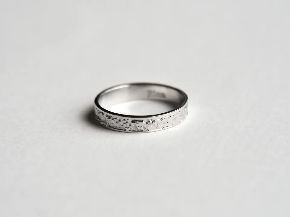 ・コンセプト 「心の内に秘めた光を引き出し、身に纏う人そのものを輝かせたい。」人は誰しも、心にきらりと輝く光を持っています。その光は、人それぞれに形が異なるからこそ美しく、素晴らしい。Rinnは、心に宿る光に寄り添うように、身につける人そのものを輝かせるジュエリーを提供しております。 「毎日身につけても壊れにくく、時を重ねるとともに肌に馴染んでいくようなジュエリーを」 Rinnは身につける人の肌と生活に馴染むジュエリーを提供しております。 ・デザイン 「他になく、永く愛されるデザインを。」 ジュエリーのデザインは、日常に溶け込んだささやかな美しさから生まれます。 例えば揺らめく布の柔らかさに触れた時や、朝陽が昇る瞬間に霞んでいたものが透き通って見えた時、感じ取った自然の美しさがジュエリーの形になっていきます。 そこへクラシカルな要素を取り入れることで、"Rinnにしかないデザイン"を意識いたしました。 お客様の生活に寄り添い続けるために、永く愛され続けるデザインにこだわりました。 そこには「親から子へと、時代を超えて受け継がれていって欲しい」という想いも込めております。どんな人にもどんな装いにも、しっくりと馴染み続けていくよう願いを込めてジュエリーを製作しております。 ・アイテム 古くからあるプレーンなリングの中央に、有機的なテクスチャーをつけました。 フラットなデザインですので、普段使いに適しております。
