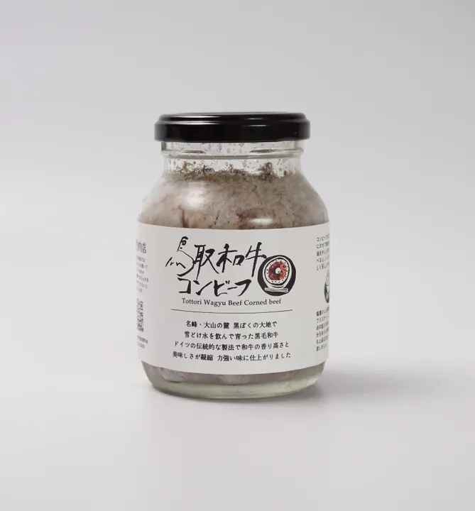 【たくさんのメディアに紹介されています】 - 2022年11月15日 テレビ朝日「家事ヤロウ」 にて紹介されました! - 2022年09月26日 TBS THE TIME,にて紹介されました! - 2021年11月25日 TBS ラヴィット!にて紹介されました! などなど・・・ 【和牛「生食感」の鳥取和牛コンビーフ ギフトにも喜ばれる品】 和牛の香り高さと美味しさを凝縮し、力強い味に仕上げました。 鳥取和牛の、脂がさらっとしていて軽くすっと消えていく特徴が「生食感」を実現し、 赤身の美味しさが余韻として残ります。 脂の融点の低さを生かし、冷凍保管にして塩分を抑え、保存性よりも上品な口当たりを追求いたしました。 鳥取和牛のA5ランク、オレイン酸を多く含んだ上質な肉を使って作る、高級感のある特別なコンビーフです。 ガラスの瓶入りでギフトや贈り物としても喜ばれる形状です。 【コンビーフのほどける生食感を出すために丁寧にカットされた高級コンビーフ】 鳥取和牛コンビーフは、鳥取和牛の肩やモモの繊維質でほぐれやすい部位を使用しています。 その中にはブリスケやシンタマなどの和牛の希少部位も使用しています。 上質なオレイン酸が豊富な鳥取和牛は、コンビーフに滑らかな食感と深いコクを生み出します。脂質と赤身の部分が絡み合うことで、かみしめると肉の美味しさが口の中に広がります。また、熟練の精肉職人によって余分な脂やすじを丁寧にカットしています。脂やすじを取り除くことで、使用できる肉は少なくなってしまいますが、これが口当たりの良さにつながります。 【まずはそのまま食べて。 コンビーフの概念が変わります】 鳥取和牛コンビーフは解凍してそのままいただけます。 口に含むと食欲をそそるハーブのほのかな香り。 鳥取和牛の脂がさらっとしていて軽く、すっと消えていく。しかし赤身の美味しさは余韻として残ります。 お肉の美味しさ重視で塩分は控えめ。だから1度にたくさんいただけます。 鳥取和牛コンビーフ ・ごはんのお供に ・サラダに ・サンドイッチに 様々なアレンジでお楽しみいただける一品です。