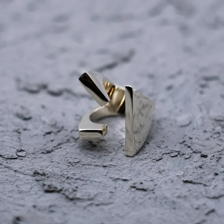 Ring from unbalance collection 存在感のあるリング。 ボリュームもありつつ、スタイリッシュに。 洗練された手元を演出します。