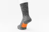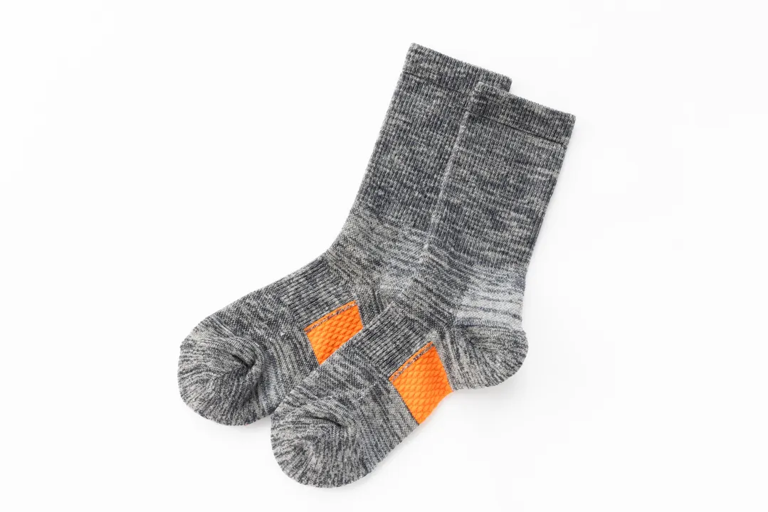 靴下の製造途中で発生する端材や編みくず、カットくずを再利用して生まれたアップサイクル素材「Looplus(ループラス)」に、ウールと高強度フィラメント糸を組み合わせたハイブリッド素材「NIKKE AXIO&©」を引き揃えて編み上げた、高機能ソックスです。環境への配慮を実現しながら、ウールならではの柔らかく快適な履き心地を両立した、“いいとこどり” の一足です。 ふくらはぎ部分にはサポート構造を採用し、優れたフィット感を実現。足底はパイル編みでクッション性と保温性を高め、足首部分もパイル仕様で保護性を強化しています。また、アキレス腱部分は摩擦に強いナイロン糸で補強し、耐久性を向上。土踏まずにはアーチサポート機能を備え、歩行時の負担を軽減します。アウトドアやウォーキング、自転車など幅広いアクティビティで快適に着用できる設計です。カラーバリエーションは5色展開で、シーンやコーディネートに合わせてお選びいただけます。