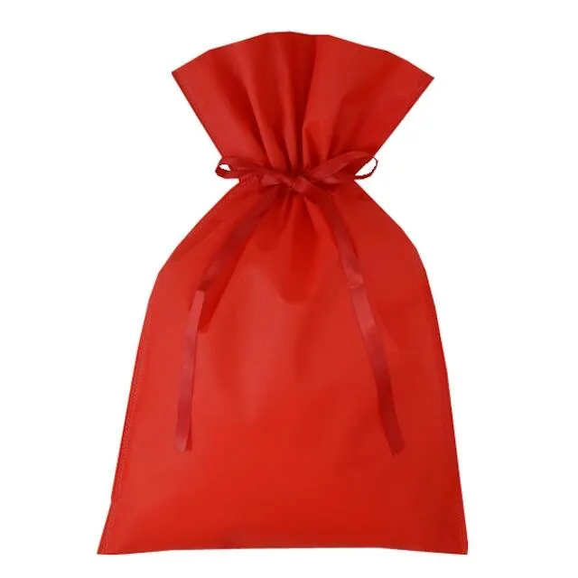 不織布ギフトバッグMサイズ 不織布ポーチサテンリボン付き マチ無し 100枚入り LC961 レッド