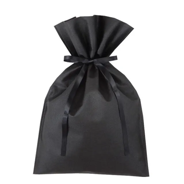 不織布ギフトバッグMサイズ 不織布ポーチサテンリボン付き マチ無し 100枚入り LC961 ブラック