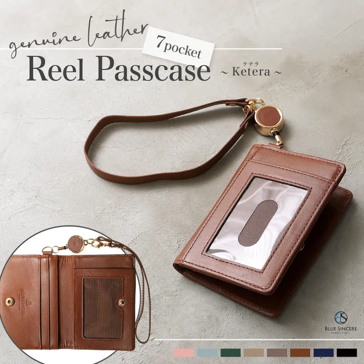【ブルーシンシアとは?】 「ブランドの発展とともに、バングラデシュの社会問題を解決する」という理念を掲げ、 バッグや財布を自社工場のバングラデシュの職人たちと、その土地の素材の可能性を追求し、 先進国でも通用する高機能なプロダクトを生産しています。 【 皮本来の質感としなやかさを追求した本革プレミアムレザー 】 「ずっと長く愛用してほしい。」その想いから素材選びに徹底的にこだわりました。プレミアムレザーは、高級ブランドとも取引きする有名タンナー(皮なめし業者)が、BLUE SINCEREのために調達した“最高級の牛本革”です。ずっと触っていたくなるような、滑らかな質感が特徴です。 【 大容量で7枚入る収納力&リール付き 】 内側と外側に1つずつスライド窓を採用。会計時や改札でもスムーズに取り出せます。また二つ折り設計なので、大切なカードは内側ポケットに保管できます。さらに、35cm伸びるリール付き。大容量&機能的なパスケースです。