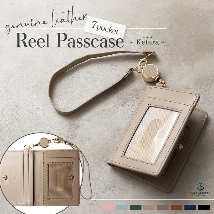【ブルーシンシアとは?】 「ブランドの発展とともに、バングラデシュの社会問題を解決する」という理念を掲げ、 バッグや財布を自社工場のバングラデシュの職人たちと、その土地の素材の可能性を追求し、 先進国でも通用する高機能なプロダクトを生産しています。 【 皮本来の質感としなやかさを追求した本革プレミアムレザー 】 「ずっと長く愛用してほしい。」その想いから素材選びに徹底的にこだわりました。プレミアムレザーは、高級ブランドとも取引きする有名タンナー(皮なめし業者)が、BLUE SINCEREのために調達した“最高級の牛本革”です。ずっと触っていたくなるような、滑らかな質感が特徴です。 【 大容量で7枚入る収納力&リール付き 】 内側と外側に1つずつスライド窓を採用。会計時や改札でもスムーズに取り出せます。また二つ折り設計なので、大切なカードは内側ポケットに保管できます。さらに、35cm伸びるリール付き。大容量&機能的なパスケースです。