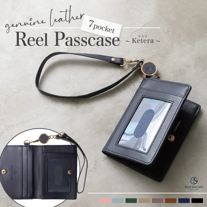 【ブルーシンシアとは?】 「ブランドの発展とともに、バングラデシュの社会問題を解決する」という理念を掲げ、 バッグや財布を自社工場のバングラデシュの職人たちと、その土地の素材の可能性を追求し、 先進国でも通用する高機能なプロダクトを生産しています。 【 皮本来の質感としなやかさを追求した本革プレミアムレザー 】 「ずっと長く愛用してほしい。」その想いから素材選びに徹底的にこだわりました。プレミアムレザーは、高級ブランドとも取引きする有名タンナー(皮なめし業者)が、BLUE SINCEREのために調達した“最高級の牛本革”です。ずっと触っていたくなるような、滑らかな質感が特徴です。 【 大容量で7枚入る収納力&リール付き 】 内側と外側に1つずつスライド窓を採用。会計時や改札でもスムーズに取り出せます。また二つ折り設計なので、大切なカードは内側ポケットに保管できます。さらに、35cm伸びるリール付き。大容量&機能的なパスケースです。