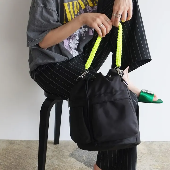 機能的でお洒落なデザインが魅力の2WAYバッグ。 軽量ながら丈夫なREPETポリエステル素材で作られており、持ち運びに便利です。 撥水生地を使用しているので、幅広いシチュエーションでご使用いただけます! ※完全防水ではありません。 2WAY仕様でお仕事や旅行、ショッピングにも最適です♪ カラフルなコード編みハンドルを使用しトートバッグとして、 付属のショルダーストラップでショルダーバッグとしてご使用いただけます。 お好みやシーンに合わせてスタイルを変えることができ、 いつものファッションをより楽しんでいただけるアイテムです。 口元は大きく開く巾着仕様。 フロントには個別のポケットが2つ。 内側には小物整理に便利ポケット付き。 ブランドアイコンの7つのヒキテがひとつになったチャーム付き★ 【cheek 販売価格について】 弊社設定上代(税込価格)での販売をお願い致します。 また、商品に対してのクーポン等はご遠慮いただいております。 ショップ全体でのクーポン等は問題ございません。 ご理解・ご了承のほどお願い致します。