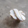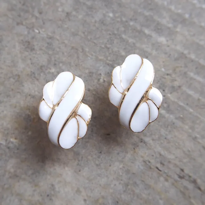 イヤリング【Vintage】/ホワイトエナメルリボンモチーフイヤリング 柔らかな曲線が印象的なモチーフに ホワイトとGDカラーが映える クラシカルなムードに満ちたイヤリング。 アンティークショップで目にするような、クラシカルなイヤリングを揃えたコレクション。 デイリーからセレモニーまで幅広いシーンにお使いいただける シンプルながらもOucaらしいアクセントの効いたアイテムが揃います。 ◆詳細◆ リボンを柔らかく折り重ねたような、優美なヴィンテージ感漂うモチーフが印象的なイヤリング。 細いゴールドの淵とホワイトのエナメル素材のコントラストがクラシカルなムードを放ちつつ、 程よいボリュームで耳元に視線を集めるモチーフは柔らかな曲線を描き、爽やかな上品さで顔周りをワントーン明るく彩ります。 華やかなシーンはもちろん、カジュアルなデイリーコーデのアクセントにもお勧めです◎ 金具はクリップタイプ。 シリコンカバーも装着しやすく、快適にお使いいただけます。 商品には専用のBOXが無料で付属しますので、ギフトにも最適です◎