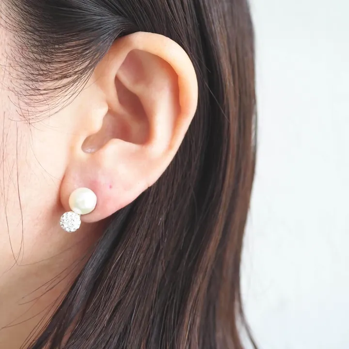 ピアス【Vintage】/淡水パール8mm2粒MIXピアス クラシカルな表情を覗かせ輝く ベーシック過ぎない淡水パールのイヤリング&ピアス いつも頼れる淡水パールの安心感に満ちた魅力に クラシカルな表情と細やかなビジューの輝きを添えたイヤリング&ピアス 清潔感を醸すモダンな表情も持ち合わせたシルバーカラーのパールデザインは もうひとつのわたしの定番として寄り添ってくれるような存在 透明感あふれる輝きと寄り添い 深みと存在感を増す美しい天然パールの魅力を 日常の様々なシーンでお楽しみください ◆詳細◆ 既存の人気アイテム『EN058【Vintage】ラウンドパーツ3粒MIXイヤリング/ピアス』で使用している 細やかな施しのキラキラのチェコビーズと 高さを抑えたナチュラルな雰囲気の漂うモチ型淡水パールを縦に連ねたイヤリング&ピアス。 淡水パールは『BD021【Bride】ブライド8mm淡水パールイヤリング』で使用しているものと同じ 程よい存在感を持つ人気の8mmサイズをチョイス。 6mmサイズのガチェコビーズとのサイズのバランスが、シンプルなデザインに映えるアクセントとなります。 淡水パールのさわやかな清潔感と艶のある質感は、 『EN058ラウンドパーツ3粒MIX』のコットンパールのまろやかな表情とはまた異なるピュアな輝きで新鮮な印象。 小さなガラス素材を散りばめたチェコビーズは細やかな輝きとともに華やかさを放ちながらも そのマットな質感からカジュアルなデイリーシーンにもお勧めですよ◎ 縦ラインのすっきりとしたフォルムは耳元にしっくりと収まり、イヤリング金具も目立ちにくくきれいに着けていただけます。 イヤリングタイプ(EN162)もございます。 商品には専用のBOXが無料で付属しますので、ギフトにも最適です◎
