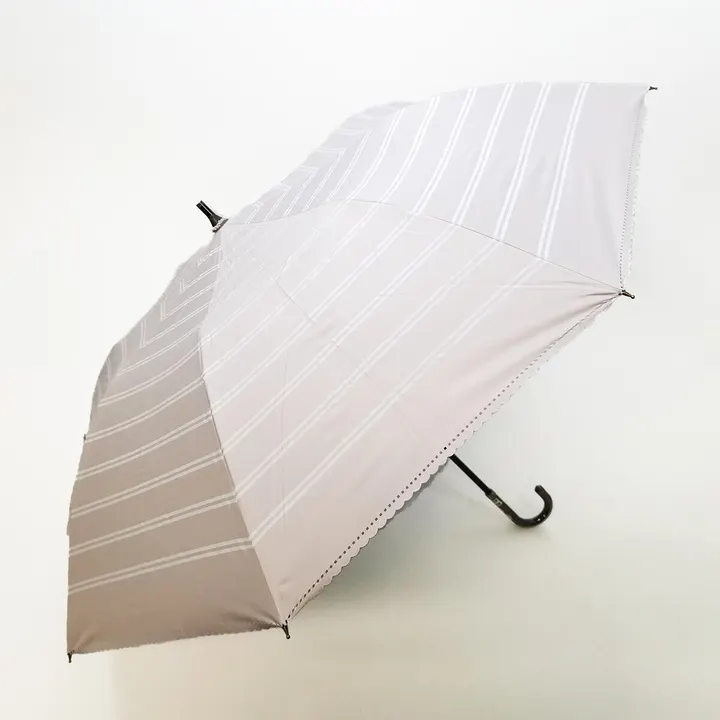 日本政府 推奨商品 ショートワイド傘 ボーダー&裾ヒートカット 晴雨兼用 UVカット&完全遮光 遮熱 27108 ピンク