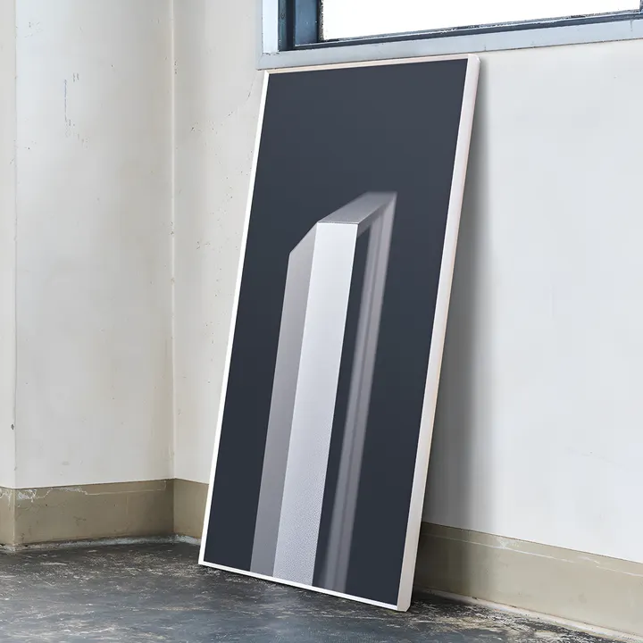 「CUT」と名付けられたこの製品はその名の通り、エッジを切り落として、シャープな印象を携えた額縁です。 シンプルな額縁にあるそれぞれの面がカットされたような形をしています。 このことより、正面から見た時は額による影が作品に落ちず、 額をあまり意識する事なく作品に集中する事が出来ます。 さらに、斜めから見た時は側面が面取り(カット)されているため、 壁面から浮いた様な軽やかな印象と品のある額縁となりました。 シンプルで、品のあるものを望まれる方には最適な製品です。 2019年グッドデザイン賞受賞、「DFA design for ASIA 2020」受賞