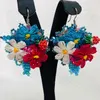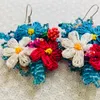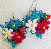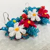 oya刺繍ピアス ブルーとホワイトの涼しげなお花に紅一点 伝統工芸品 1点もの 1122