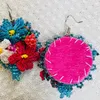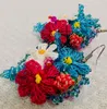 サイズ:約φ4~5cm フック部分含む最長約5.5cm 色鮮やかなお花のモチーフに様々なビーズなどをちりばめたピアス 耳元で華やかでキュートにお顔周りを彩ります。 トルコの伝統手芸 oya 起源は不明らしいのですが、大昔は 魚を捕る網がすでにその技法だったといわれています。 イスラムの女性たちは髪を隠すためにスカーフを覆います。 はるか昔に使われていたその技法が、イスラムの文化圏でスカーフの縁どりに 装飾されおしゃれを楽しむようになったようです。 オヤはトルコ語で縁飾りを意味します。 技法や手法によって呼び名が変わるそうです。 針を使う技法、かぎ針を使う技法 または、ビーズや石などを編みこんでいる手法など。