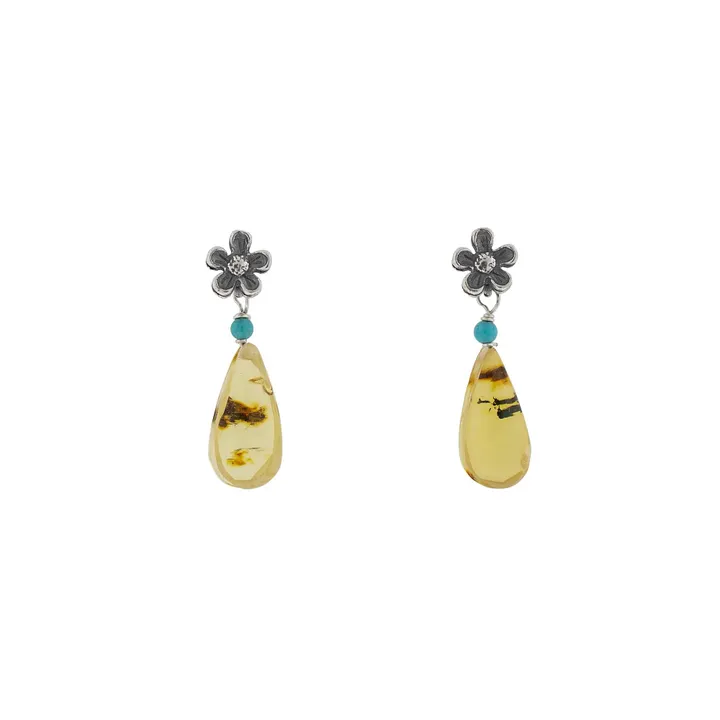Aretes Florecita Con Ámbar|小花のピアス(シルバー・アンバー・天然石)