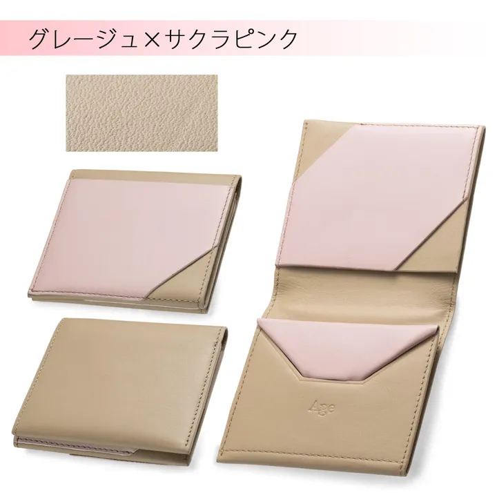 One~第3世代オールインワン、インド産レザー財布 グレージュ×サクラピンク