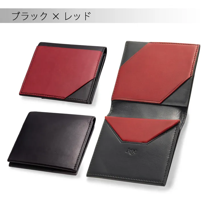 One~第3世代オールインワン、インド産レザー財布 ブラック×レッド