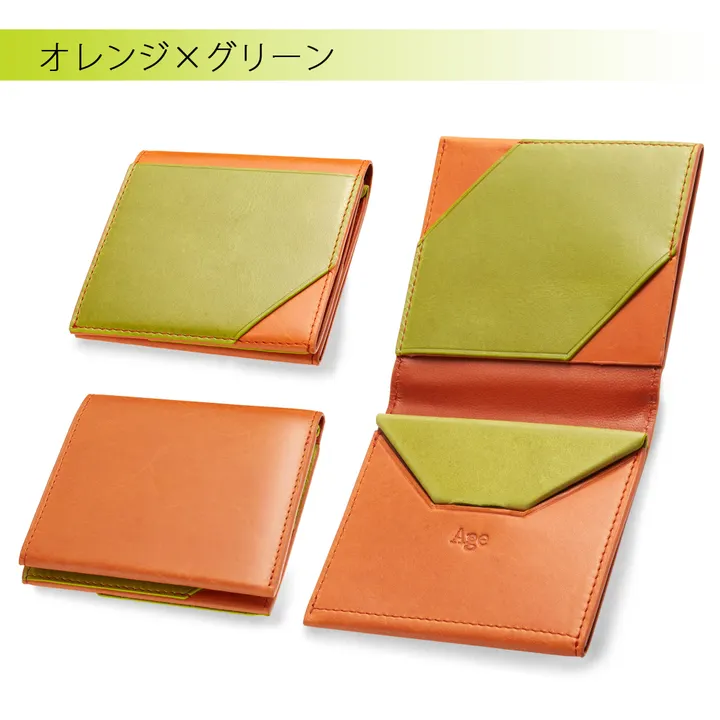 One~第3世代オールインワン、インド産レザー財布 オレンジ×グリーン