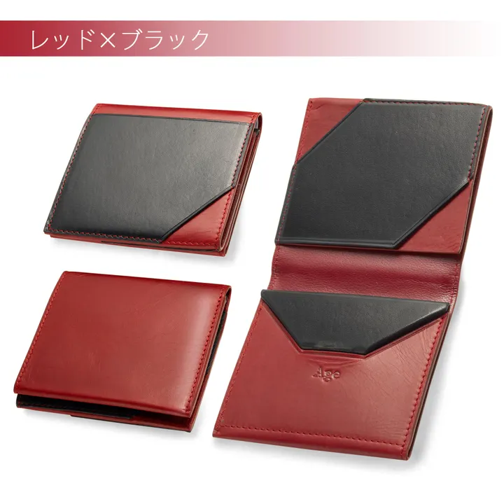 One~第3世代オールインワン、インド産レザー財布 レッド×ブラック
