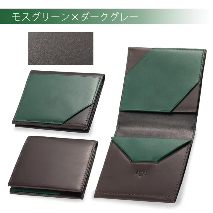 One~第3世代オールインワン、インド産レザー財布 ダークグレー×モスグリーン