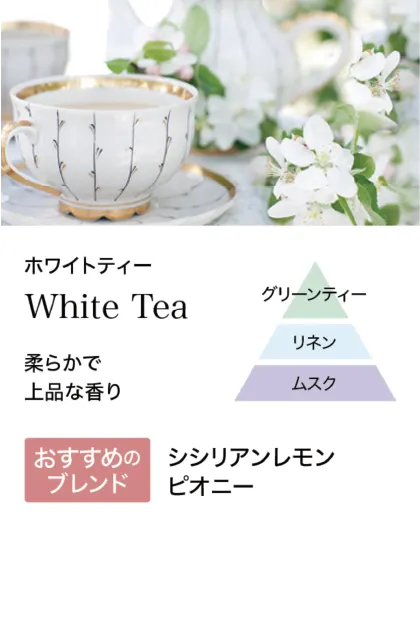 テーマに合わせて1つ1つブレンドした香りで、フレグランス・エッセンシャルオイルには、厳選した植物由来のものだけを使用。心地よい香りがしっかりお部屋に広がります。
