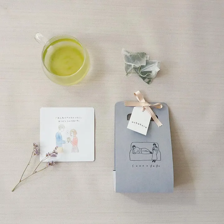 『そんな夫婦に贈るお茶』は、ちょっとクスッとなって、ちょっとグサッとなって、 二人で笑って、お互いが少し近づくきっかけになれる、、。 そんなブランドです♡(にしたいです) 割とグサグサ切り込んでいく事もありますが笑笑 『より良い明日のために』 目を逸らさずに見てみてください。 ティーバッグが全部で6個のセット そんな夫婦のお茶は、1袋、2つティーバッグが入っています (パートナーと2人でお茶時間を楽しんでほしいため) 全部で8種類 中のお茶もそれぞれ違います♡ 〇”あなたでよかった。今までも、これからも。” 〇”ごめんねはその日のうちに。ありがとうは何度でも。” 〇”いつもありがとう!君がいてくれるだけで幸せです。” ーーーー深蒸し茶 〇”「お茶淹れて」の言葉より「お茶淹れようか」” ーーーー本山茶 〇”365日連勤。休憩なし” ーーーー焙じ茶 〇”一分でもいい。その時間をください。” ーーーー抹茶入り玄米茶 〇”「手伝おうか?」家事は共同作業よ。” ーーーー和紅茶 〇”なんでもいいはどうでもいい” ーーーー釜炒り茶 かわいいギフトバッグも別売り中です。 ギフトバッグには3袋~5袋入ります。 お好きなティーバッグを選んでいただきセットして発送も可能。 バラで発送も可能。(その際リボンは結ばず、別途同梱します) 雑貨屋さん、ギフトショップなどで好評販売中 そんな夫婦専用Instagram https://www.instagram.com/sonna_fufu/?hl=ja