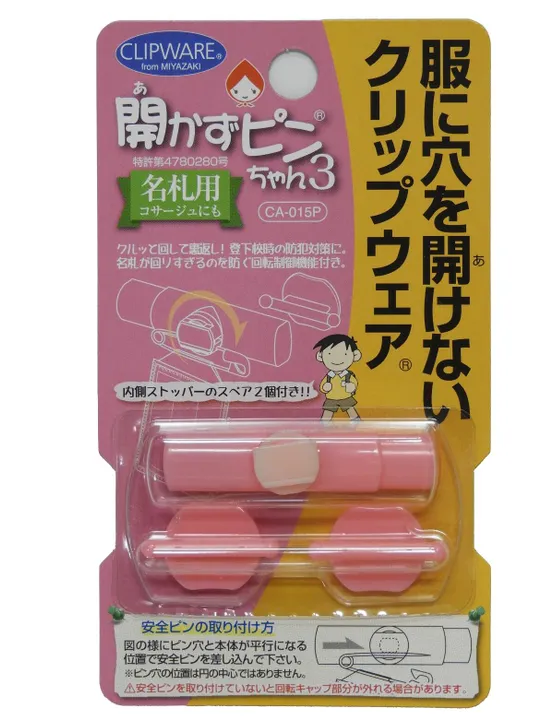 服に穴を開けない名札用留め具「開かずピンちゃん」シリーズを展開