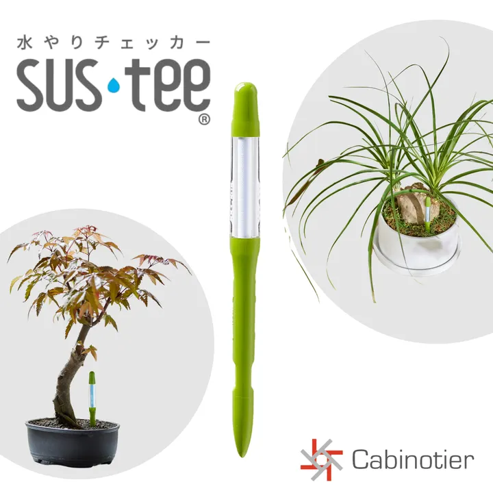 植物の水やりチェッカーSUStee(サスティー)は、水やりのタイミングを色の変化でお知らせ。白色は水やりの合図です。植物ライフをもっと快適に!