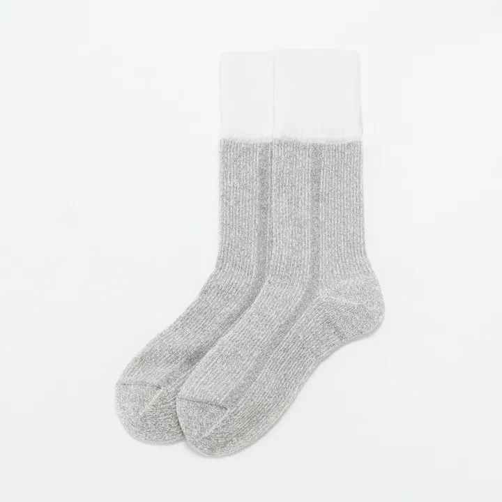 とにかく軽くて柔らかい、履いているのに履いていないような感覚。 肌側には特殊な紡績方法と撚糸の工夫によって柔らかさと強さを求めた糸を使用。 表面にはヴィンテージの裏毛のような表情が出るように立体感のある糸を使用。 レトロな雰囲気を醸し出す。 58%COTTON, 18%ACRYLIC, 18%NYLON, 5%POLYESTER, 1%POLYURETHANE 日本製