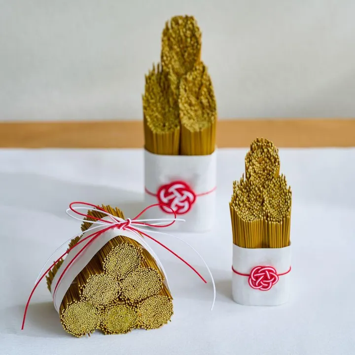 新年の訪れを華やかに彩る門松を古くから日本の暮らしに寄り添ってきた自然素材「い草」で丁寧に作りました。自然素材のい草は湿気やにおいを断面から吸収する特性があり、見た目の美しさだけでなく、空間をさわやかに整える効果も。お正月が終わったあとは水引などの飾りを外して玄関やトイレなどにそのまま置くだけで、ナチュラルなインテリアとして長く楽しめます。和の風合いを暮らしに取り入れる、季節感あふれるアイテムです。●い草のお飾りは<a href="https://www.superdelivery.com/p/do/dpsl/190793/?word=%E3%81%84%E8%8D%89%E3%81%AE%E3%81%8A%E9%A3%BE%E3%82%8A">コチラ</a>生産地:福岡県三潴郡*デザインボックス入りい草の学名 Juncus には「結ぶ」という意味があるそうです。結ぶという言葉には、繋げる・まとめる・創る・固める・締めるのように様々な意味があり、人との関係をむすぶ、契りを結ぶといったご縁や心をむすぶという意味でも使われます。い草はそんな縁起の良い意味を持った草です。また、い草には空気をきれいにする効果や消臭効果、調湿効果があり、さらに香りにはリラクゼーション効果があります。【インテリア雑貨】【消臭】【リラックス】【イグサ】【い草】【ハレの日】【出産】【成人式】【ひな祭り】【七五三】【正月】【正月飾り】【水引】【い草のお飾り】【プレゼントボックス】【X2】Interior Goods, Deodorant, Relaxation, Igusa, Special Occasion, Birth, Coming of Age, Hina Festival, Shichi-Go-San, New Year, New Year Decoration, Mizuhiki, Igusa Decoration