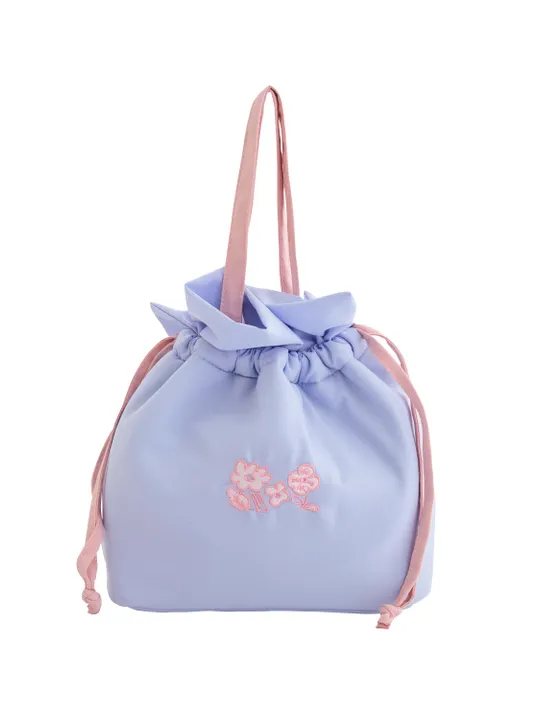 春からのお弁当作りを楽しくするランチグッズシリーズができました。 毎日のランチタイムが待ち遠しくなります。 鼻歌を歌いながら気軽に楽しくお昼ご飯を。 ハミングッド♪ 巾着を絞ると開口部がフリル状になり、ふんわりとかわいい雰囲気になります。 持ち手と紐が配色になっているのがデザインポイント。 柔らかい生地なのでバッグの中に入れても嵩張りにくく、汎用性が高いランチバッグです。 内側には保冷材用のメッシュポケット付き。 保冷・保温両対応です。