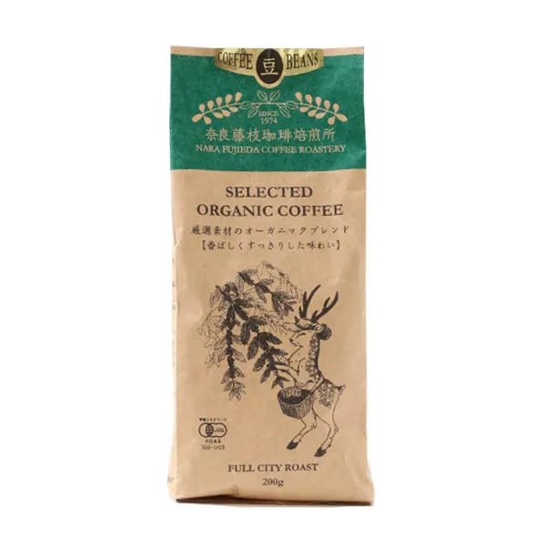 【厳選素材のオーガニックブレンド】 SELECTED ORGANIC COFFEE 珈琲豆を収穫する年より3年以上前から有機肥料による土作りを行った有機JAS認定農園の豆を使用。コロンビアとメキシコの2種類の豆をブレンドしました。 コク ●●●○○○ 苦味 ●●●●○○ 酸味 ●●○○○○ 内容量:200g