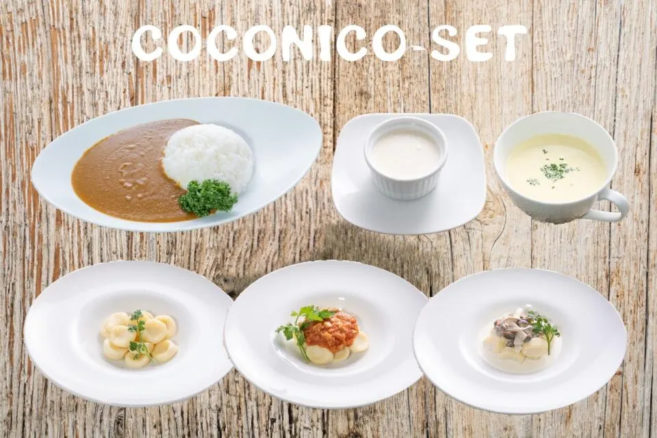 カレー、ポタージュ、ニョッキ、ボロネーゼ、クリームソース、ディップソースの6種類が入ったCOCONICOお得セットです。