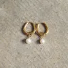 \最新作!/ベーシックにひとさじのアクセントを効かせたピアス / ステンレスワンタッチフープ+1粒淡水パール2wayピアス【Circle】※BOX付き