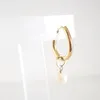 ピアス【Circle】ステンレスミニモチーフ+細チェーン2wayピアス 活躍度の高いシンプルなデザイン×機能性 低アレルギーのステンレス素材を2wayでたのしめる 新たなピアスコレクション 低アレルギー素材として人気の高いステンレス素材のピアスが登場! 安心感ある淡水パールやチェーンのゆれ感、テクスチャーの輝きを織り交ぜて 日常の様々なシーンで活躍する万能で汎用性の高いデザインに シンプルなフォルムに着け外し可能なチャームをプラスした Oucaらしさをまとう新たなコレクションです ◆ POINT ◆ ・程よいボリュームのフープピアスに、取り外し可能な繊細な淡水パールのチャームをプラスしたデザイン。 ・フープピアス本体は全てゴールドカラーのメッキを施したステンレス素材。メッキはIPメッキ(イオンプレーティング)と呼ばれる密着性と耐久性に優れたコーティング加工を採用。※パールチャームのフープ、パールをつなぐピン部分は真鍮素材+通常のゴールドメッキを使用。 ・艶やかでなめらかなフープピアスは長さは17mmほどと耳元に上品に収まるサイズ。フープとポスト部分が一体化したワンタッチタイプは着用もスムーズで、わずかに縦長の緩やかなしずく型を描くニュアンスあるフォルムが魅力的。 ・チャームは7mmほどと程よい存在感の淡水パールをチョイス。角線の小さなフープに1粒下げることで、軽やかな揺れ感と華やかで凛とした面持ちがアクセントに。 ・パールの繊細な揺らめきやゴールドカラーとパールのホワイトカラーの上品なコンビネーションも、シンプルにフープのみでの着用も、イメージを変えながらジュエリーライクな美しい輝きを気軽に手ごろに楽しめるのが魅力。 ・チャームは外して異なるデザインに下げたり、手持ちのピアスに下げたりと自由なアレンジが可能◎ ■ステンレスの特徴 ●耐久性と耐水性に優れる・・・傷つきにくく丈夫。水や汗に強く、錆びにくい。 ●変色・変質に強い・・・空気中の酸素や湿気による変色が起こりにくい。美しい輝きを長く楽しみやすい。 ●金属アレルギーに対応・・・医療現場でも使用される素材でアレルギー反応が起こりにくい。 ◎金属アレルギーは金属の成分が汗などの水分により溶け出した金属イオンが原因で発症するといわれています。ステンレスは薄い酸化膜で表面が覆われている素材で、この酸化膜により金属アレルギーを引き起こす金属イオンが溶け出しにくく、アレルギー反応が出にくいと言われています。 ※金属アレルギーが出にくい素材ですがすべての方に金属アレルギー反応が出ないこと(アレルギーフリー)を保証するものではありません。 ※皮膚に異常を感じた場合は直ちにご使用を中止し、専門医にご相談ください。 商品には専用のBOXが無料で付属しますので、ギフトにも最適です◎