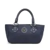 デニム生地を使用したバッグ.ラインストーンで施されたサボイロゴがワンポイント!シンプルなデザインで安定感あるフォルムが人気☆開口タイプ/ファスナー式■ポケット/(内側)ファスナー×1、オープン×2(外側)前後マグネット各1
