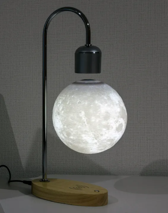 宙に浮く!模様も明かりもリアルな月のワイヤレス充電付きナイトライト Moon G moon
